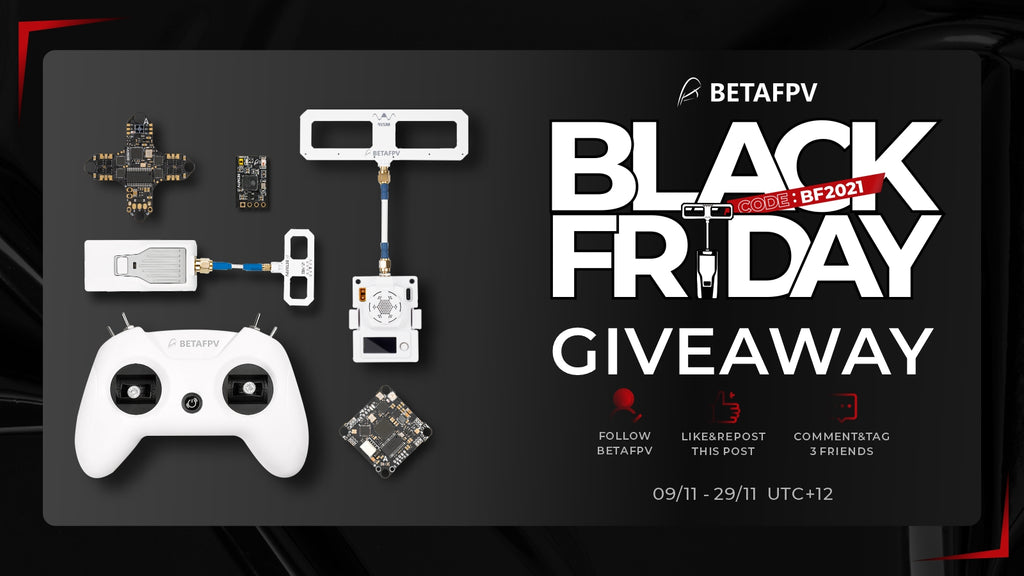 Black Friday Giveaway on 2021 is running now!!! And we prepare Great Prizes for you guys here. Use "BF2021" as a discount code and get 15% OFF shopping on betafpv.com