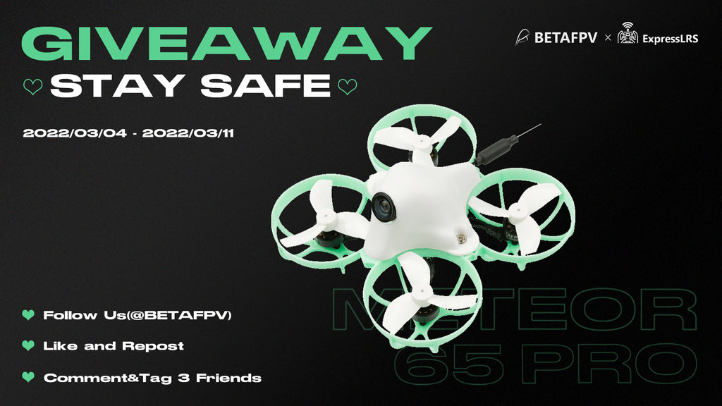 Thank you for your support of BETAFPV. And we sincerely hope everyone will be safe at home. We prepare this Giveaway with 2 whoop drones Meteor 65 Pro ELRS 2.4G and hope this can add some spices and bring happiness for you guys here. Please feel free to contact us here if you have any questions about us.