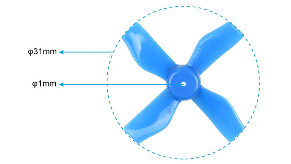 - 2 * CCW 31mm 4-blade Micro Whoop Propellers (1.0mm/0.8mm Shaft)