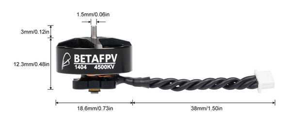 - The plug of the BETAFPV 1404 4500KV motor is a micro JST-1.25 3-pin connector, with 28AWG cables. Just plug and play, no soldering required.