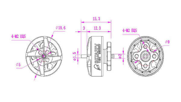 1404 Motors retains φ1.5mm shaft design instead of thread shaft for saving weight, which means it needs M2 screws to lock props, while most of 4inch props are locked with nuts in the market. These motors are best paired with 1.5mm shaft 4" props- 4025 props.