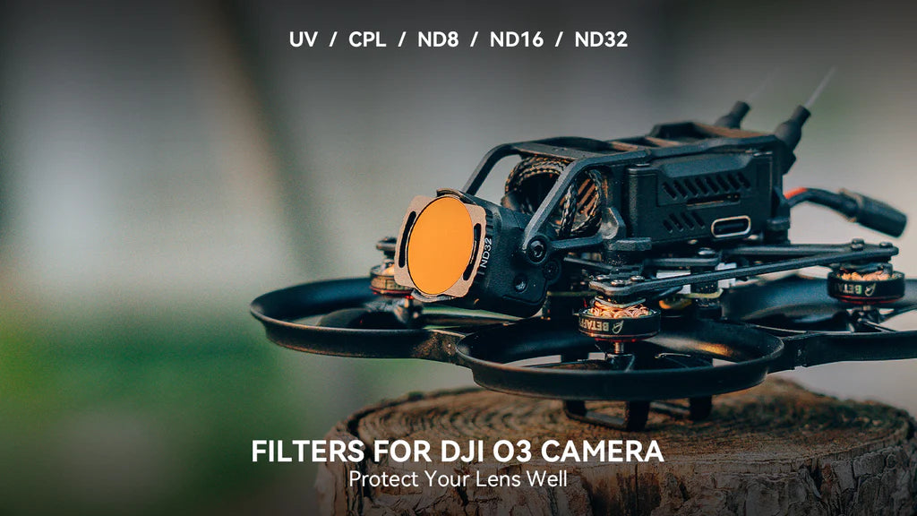 BETAFPV ND Filter for DJI O3 Camera is specifically designed for the Pavo25 V2, Pavo20 and Pavo Pico Brushless Whoop Quadcopter. Meanwhile, the DJI O3 Air Unit ND Filters are tailored for the DJI O3 Air Unit and are capable of reducing the amount of light that enters the camera lens. With this feature, you can achieve slower shutter speeds or wider apertures when flying. These lightweight filters are crafted from high-quality optical class ensuring optimal image clarity and are too easy to install on the build.
