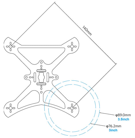 - Slotted motor mounts for 9x9 to 12x12mm motors