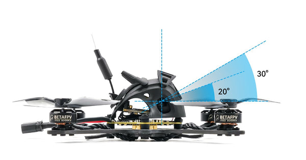 • Equipped with HQ 3020 2-blade props, it generates high thrust at high speed while consuming less power, resulting in a longer flight time of 12 mins.