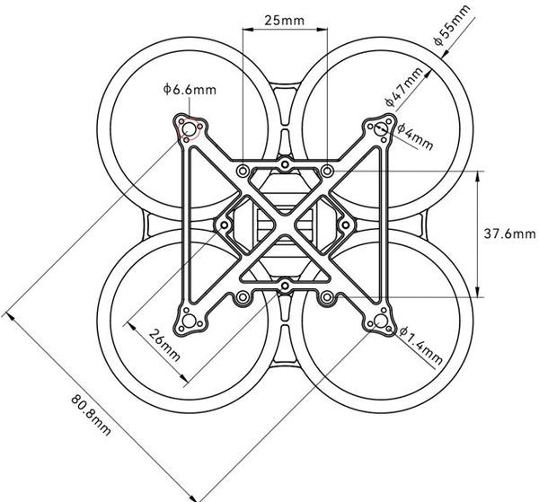 • FC mounting hole: 26×26mm, suitable for conventional whoop-type flight control