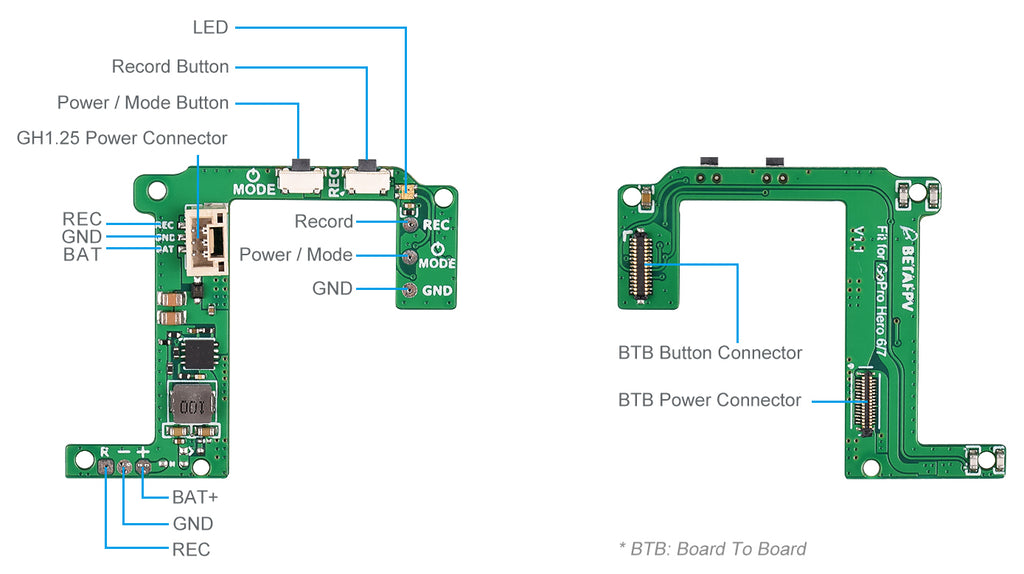 • BEC Board is specially designed for Naked GoPro HERO6/7/8 which weighs about 1.5g, makes your naked GoPro lighter and easy to install on your drone.