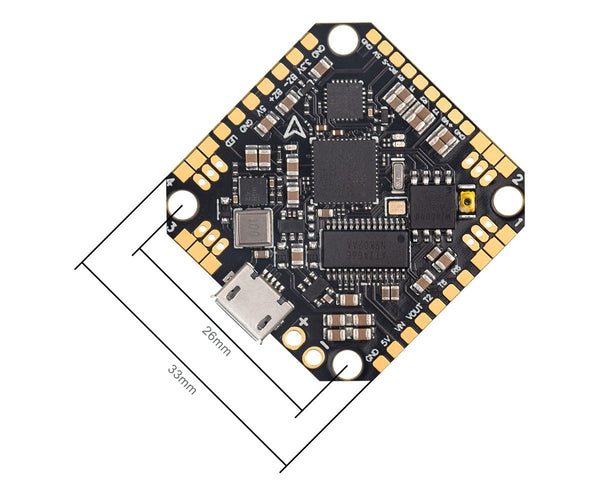 The new layout 12A 2-4S F4 AIO FC(BLHeli_S) is customized for Toothpick Drone. With the real holes, side-mount USB and all solder pads of the edge of FC, greatly reducing installation time and improving ease of self-assembly. The weight saving of the all in one board makes this ideal for tight builds - using the included Anti-vibration rubber dampers for mini stack height.