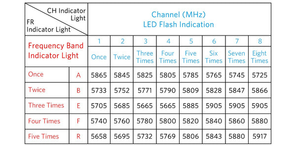 Here are the 40CH frequency band and channel indicator status. Please follow the number of LED flashes to adjust your channel.