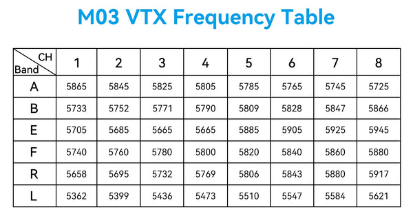 - The newest version of M03 VTX is V1.1, which has a different VTX configuration. Pilots should flash the relevant VTX file for V1.0 and V1.1 versions. Click here to download the VTX table file for M03 VTX V1.0 and V1.1.